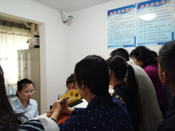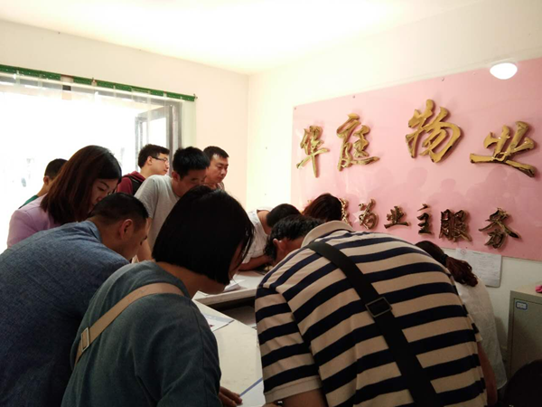 經(jīng)過(guò)各部門(mén)領(lǐng)導(dǎo)的精心帶領(lǐng)下及各單位同事的幫忙努力下一天的工作終于落幕,順利收房82戶(hù)。(圖為前臺(tái)收房及收費(fèi)室) 石婷