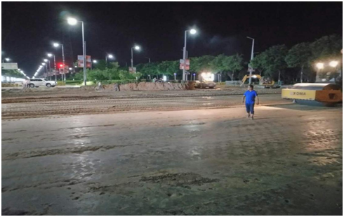 西環(huán)路平交口道路自建設(shè)以來(lái),項(xiàng)目部克服時(shí)間緊、任務(wù)重、溝通難的實(shí)際困難,合理安排施工順序和時(shí)間,嚴(yán)格按照相關(guān)道路施工標(biāo)準(zhǔn)施工;廣大筑路員工冒著酷暑,加班加點(diǎn),熱火朝天地奮戰(zhàn)在施工現(xiàn)場(chǎng);為了保證施工安全,防止塵土和噪音污染,項(xiàng)目部在整個(gè)路段都設(shè)置了圍擋,利用大型挖機(jī)對(duì)路面進(jìn)行開挖,人頭攢動(dòng),機(jī)聲隆隆,一片繁忙,為早日交工提供了充分保障。(徐堯)