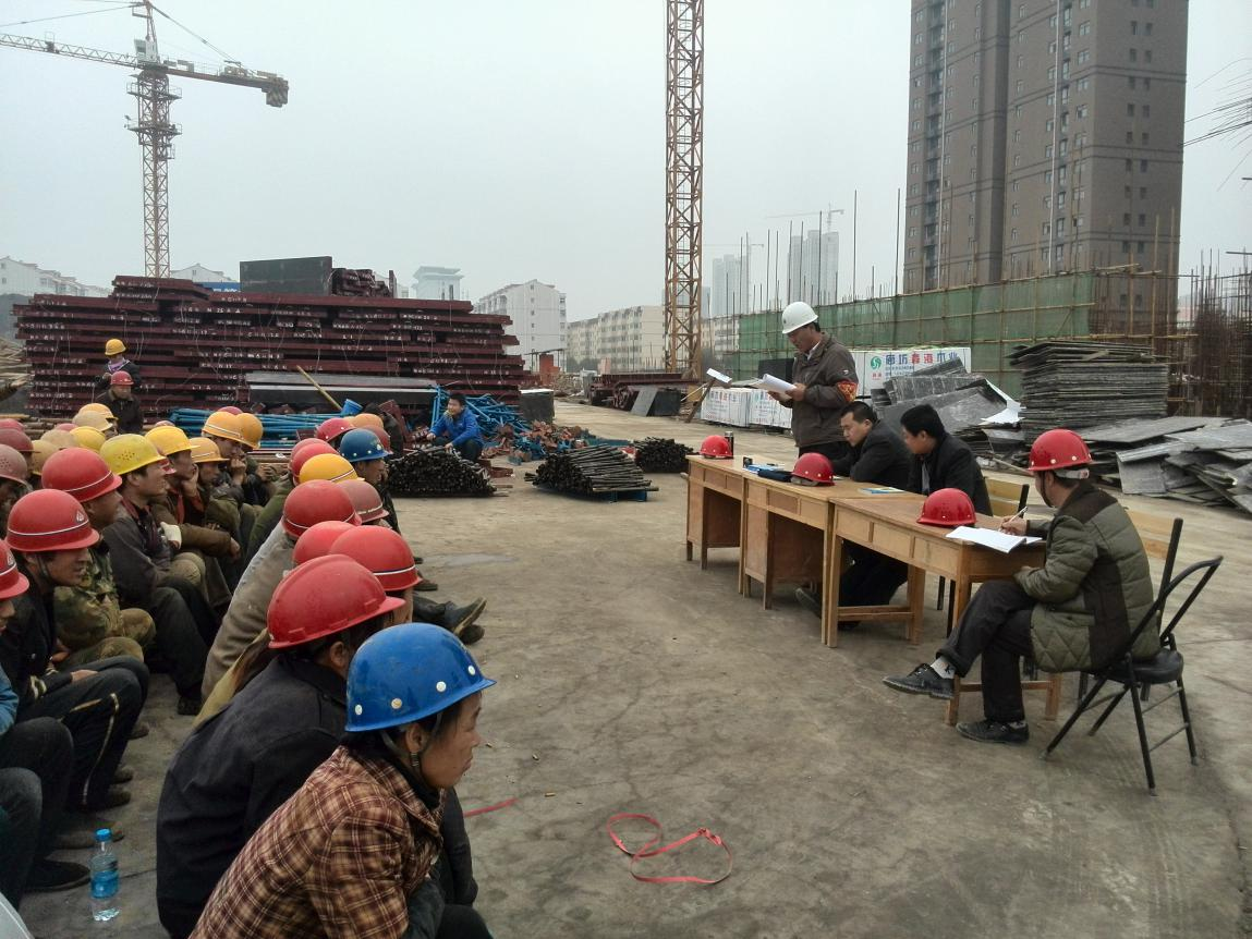 在此次三級安全教育大會上及各個班組的全部施工人員面前,工程部周戰(zhàn)勝部長宣布了會議流程,項目總工韋建業(yè)、項目安全員韓恒福、勞務公司代表羅傳久相繼做了發(fā)言,對工人講解了施工過程中的安全操作規(guī)程及需關(guān)鍵注意點,從自身經(jīng)驗出發(fā),講述了自身經(jīng)歷的安全事故,以實例來提醒工人要時刻緊抓安全不放松,切不可有一絲馬虎。同時項目經(jīng)理馮中樓也做了重要發(fā)言,他提到:工地安全無小事,任何一個看似簡單的小問題都有可能引發(fā)大的事故,項目各管理人員要防微杜漸,發(fā)現(xiàn)任何問題及時處理,并從項目管理角度,將安全管理責任落實到個人。